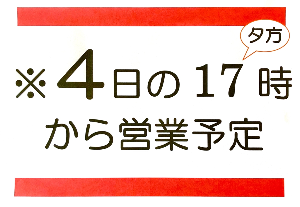 変更のお知らせ 2025.11-16 2025年12月1日2日3日4日 に臨時休業致します。 4日の17時からの営業再開の予定 ※工事内容や天候により再開予定が前後する場合がございますが、ご了承のほどよろしくお願い致します。