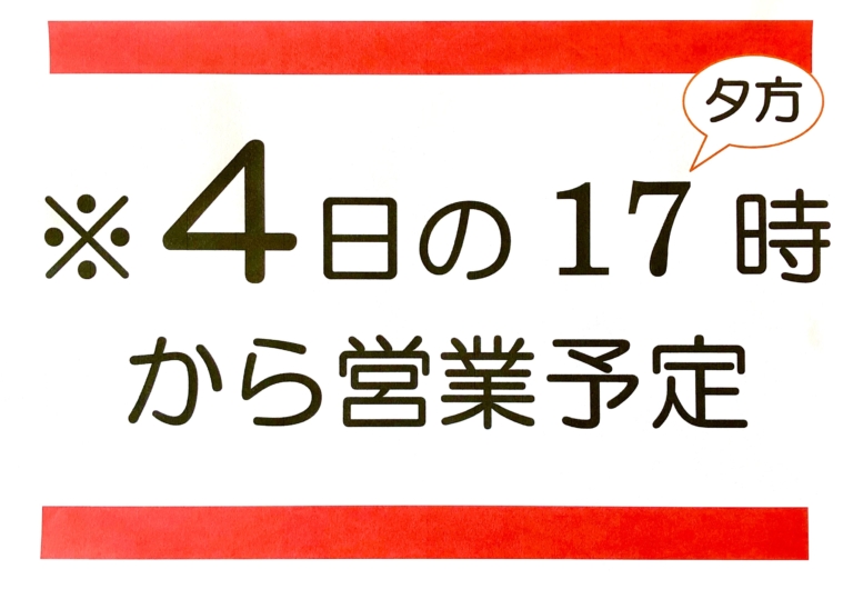 4日の17時からの営業再開の予定