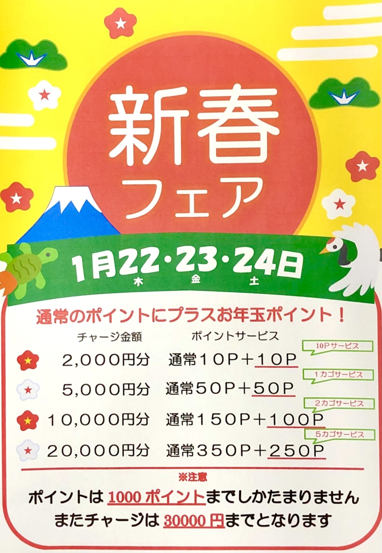 2026年1月22・23・24日 お年玉プレゼント!大幅にポイントがつきます! ※ポイントは、1000ポイントまでしか貯まりません。